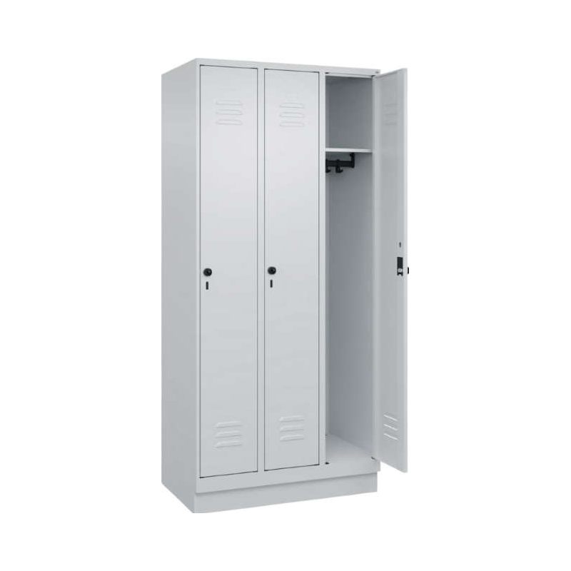 C+P Garderobenschrank CP, CLASSICB900xT500xH1950 mm RAL 7035/5012, 3 Abteile mit 100 mm hohem Sockel online kaufen | HENKA Online Shop