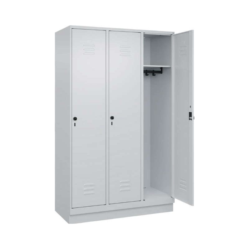C+P Garderobenschrank CP, CLASSICB1200xT500xH1950 mm RAL 7035/5012, 3 Abteile mit 100 mm hohem Sockel online kaufen | HENKA Online Shop
