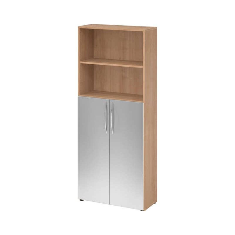 Precitool Regal HAMMERBACHER, 5OH, 3OH K: Nussbaum / F: Silber 80x34,6x188 cm (BxTxH) Türen unten BM 4770 online kaufen | HENKA Online Shop